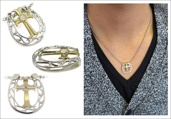 ホースシュー・馬蹄・メンズ・コンビ・ネックレス・オパール・ネックレス