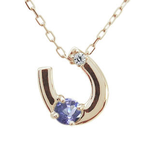 12月誕生石タンザナイトを一粒使用した馬蹄(ホースシュー)モチーフの10金製ネックレスペンダントです。