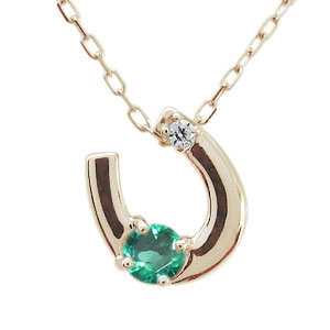 5月誕生石エメラルドを一粒使用した馬蹄(ホースシュー)モチーフの10金製ネックレスペンダントです。