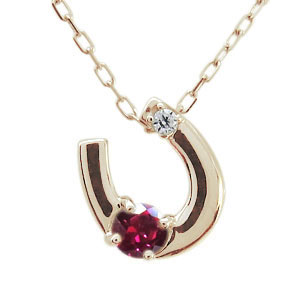 7月誕生石ルビーを一粒使用した馬蹄(ホースシュー)モチーフの10金製ネックレスペンダントです。