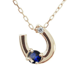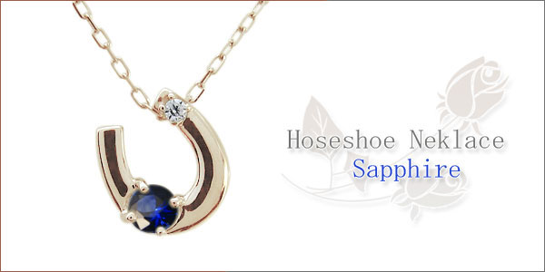 9月誕生石サファイアを一粒使用した馬蹄(ホースシュー)モチーフの10金製ネックレスペンダントです。