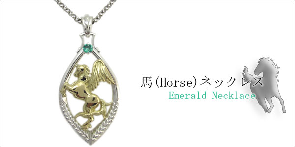 ペガサス・馬・メンズ・コンビ・ネックレス・エメラルド・ネックレス
