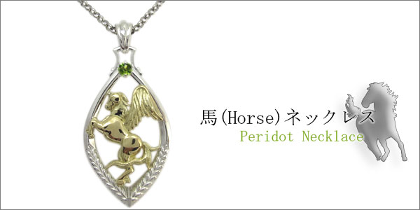 ペガサス・馬・メンズ・コンビ・ネックレス・ペリドット・ネックレス
