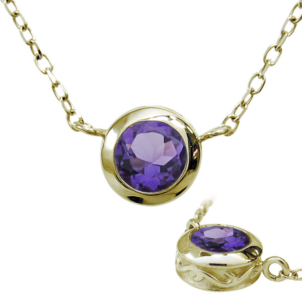 唐草ネックレス アメジスト ペンダント 一粒 アメジストネックレス 18金