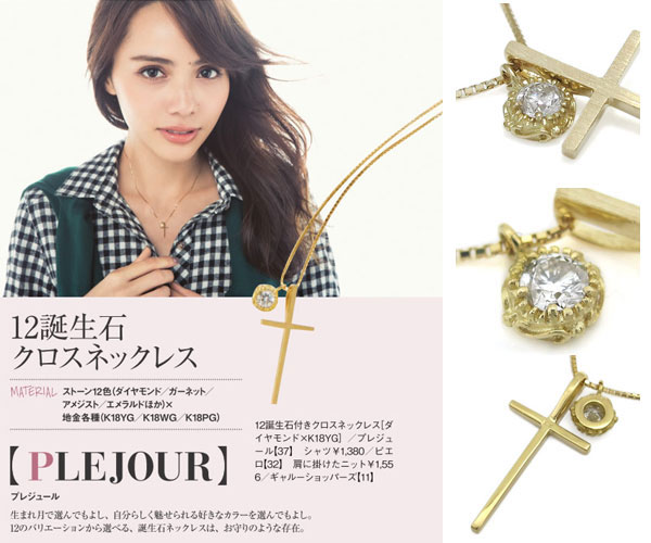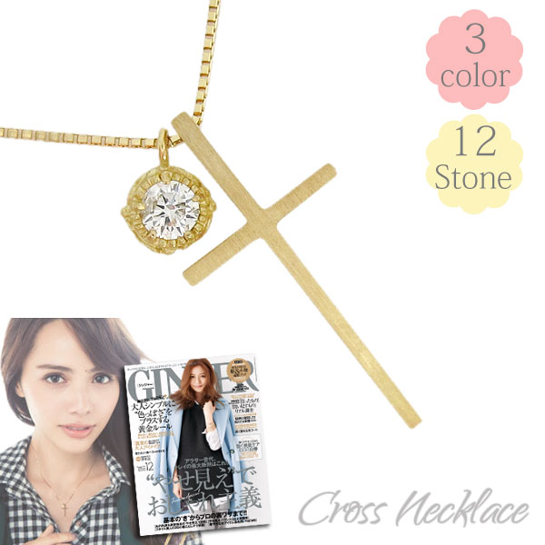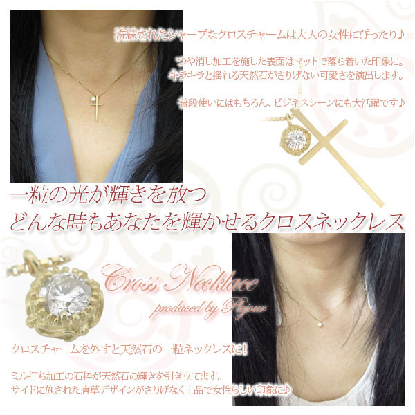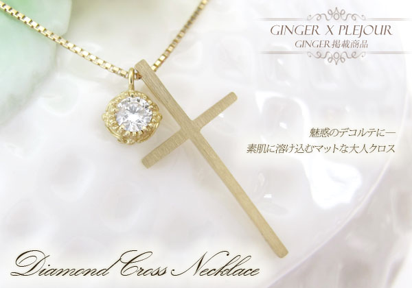 クロスネックレス 18金 一粒 ペンダント ダイヤモンド ネックレス クロス ペンダント【GINGER別冊2014AW】