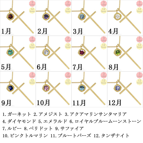 誕生石12石から選択できる、クロスモチーフネックレスペンダントです。