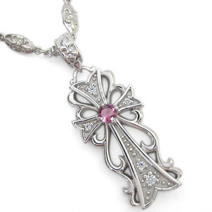 プラチナ・メンズ・クロス・ネックレス・ピンクトルマリン・ネックレス