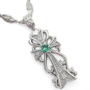 5月誕生石エメラルドを一粒使用した、クロスモチーフの18金製メンズ・ネックレス・ペンダントです。 洗練されたクロスデザインが、大人の男性の魅力を引き出してくれます。 記念日や誕生日プレゼントなどの贈り物にもお勧めのネックレス・ペンダントです。 | ||||||||||||||