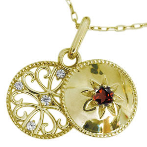 1月誕生石ガーネットを一粒使用した、18金製のスライドタイプのロケットペンダント・ネックレスです。