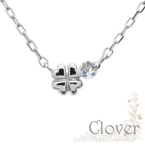 幸せを運ぶ四つ葉のクローバーモチーフに、天然石を一粒あしらったキュートなデザイン。