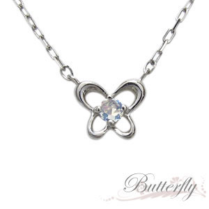 | 6月誕生石ロイヤルブルームーンストーンを一粒使用した、 プラチナ製の蝶(バタフライ)モチーフプチネックレスペンダントです。 蝶は成長し、変化を経て美しい蝶に変わることから、変化と喜びの象徴とされています。 新しい道を開き、美しい自分へ変化するためのアイテムとしておすすめです。 | ||||||||||||||