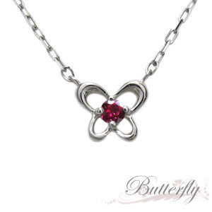 7月誕生石ルビーを一粒使用した、プラチナ製の蝶(バタフライ)モチーフプチネックレスペンダントです。
