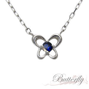 9月誕生石サファイアを一粒使用した、プラチナ製の蝶(バタフライ)モチーフプチネックレスペンダントです。