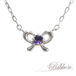 アメジスト・ネックレス・リボン・18金・一粒・プチネックレス