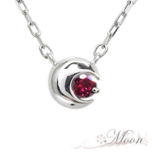 ルビー・ネックレス・月・18金・一粒・プチネックレス