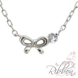 プラチナ・ペンダント・リボン・プチネックレス・ロイヤルブルームーンストーン