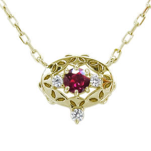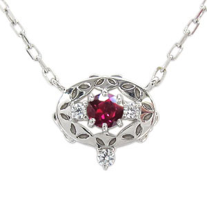![]() 7月誕生石ルビーを一粒使用した18金製の、アンティークデザインネックレス(ペンダント)です。 中央には誕生石が輝き、贅沢に散りばめられたダイヤモンドが煌めきを放ちます。 繊細で優美なシルエットから浮き出る陰影が胸元を上品でエレガントに演出してくれます。