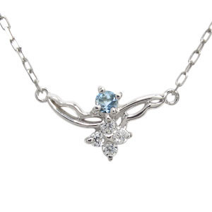 アクアマリンサンタマリア フェザー ネックレス 10金 天使の羽 ネックレス