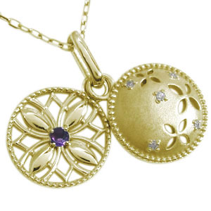 フラワー ペンダント アメジスト 18金 ロケット ネックレス