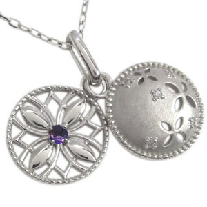 2月誕生石アメジストを使用し、花(フラワー)をモチーフにした、プラチナ製ロケットネックレスペンダントです。