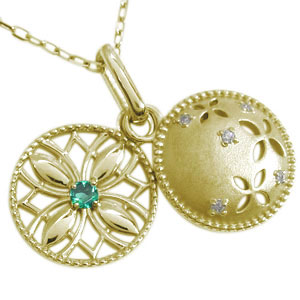 フラワー ペンダント エメラルド 18金 ロケット ネックレス