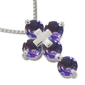 2月誕生石アメジストを使用した、18金製のクロスモチーフネックレスです。 3.0mmの天然石を贅沢に5石使用したクロスネックレスが胸元を華やかに飾ります。 記念日や誕生日プレゼントなどにお勧めです。 | ||||||||||||||