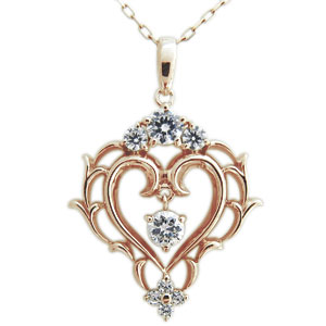 4月誕生石ダイヤモンドを使用した10金製の唐草(アラベスク)&ハートモチーフネックレスペンダントです。