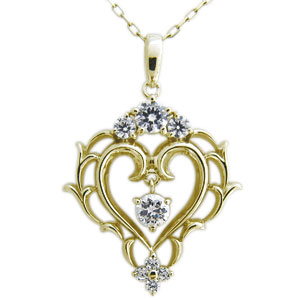 オープンハート ネックレス ダイヤモンド ネックレス アラベスク 10金 ネックレス