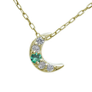 エメラルド ネックレス 18金 三日月 ネックレス