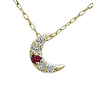 ルビー ネックレス 18金 三日月 ネックレス