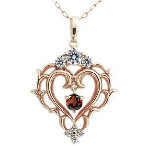 1月誕生石ガーネットを使用した10金製の唐草(アラベスク)&ハートモチーフネックレスペンダントです。