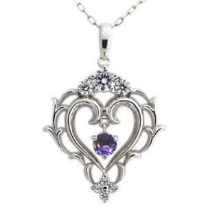 2月誕生石アメジストを使用したプラチナ製の唐草(アラベスク)&ハートモチーフネックレスペンダントです。