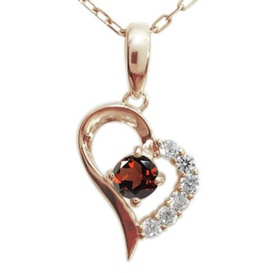 1月誕生石ガーネットを使用した18金製のハートモチーフネックレスペンダントです。