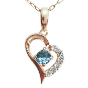 11月誕生石ブルートパーズを使用した18金製のハートモチーフネックレスペンダントです。
