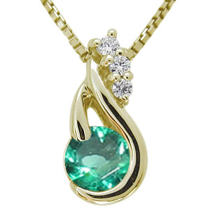 5月誕生石エメラルドを一粒使用した、18金製のエレガントなネックレスペンダントです。