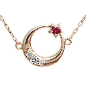 月モチーフ ネックレス ルビー 星 ネックレス 10金 ペンダント