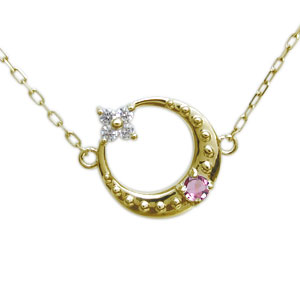 月モチーフ ネックレス ピンクトルマリン ネックレス 星 ネックレス 10金