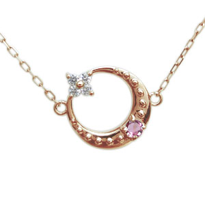 ピンクトルマリン ネックレス 月モチーフ ネックレス K18 ペンダント