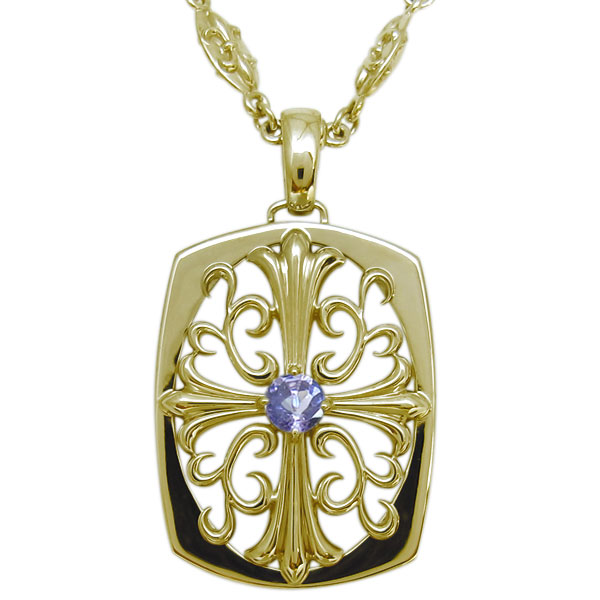 クロスネックレス タンザナイト 唐草 メンズ 18金