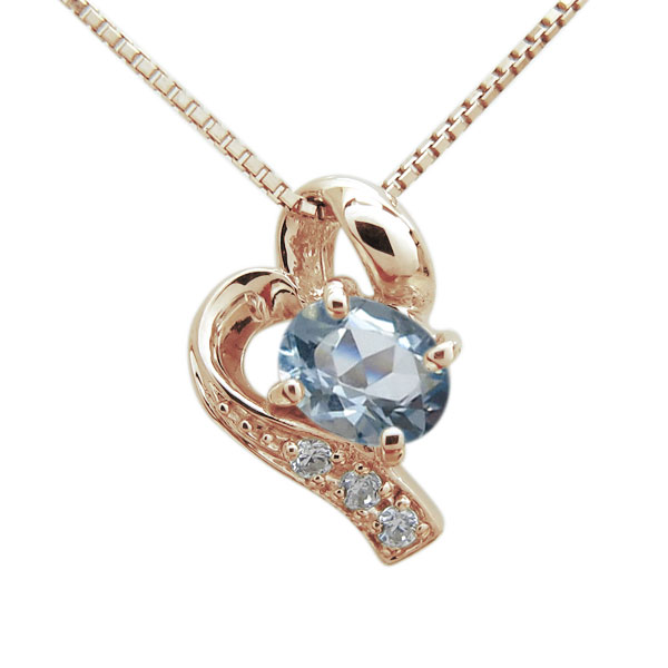 アクアマリン ネックレス ハートモチーフ 10金ネックレス