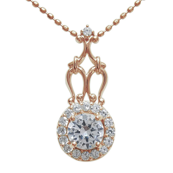 4月誕生石ダイヤモンドを一粒使用した、18金製の取り巻きデザインのアンティーク調ネックレスです。