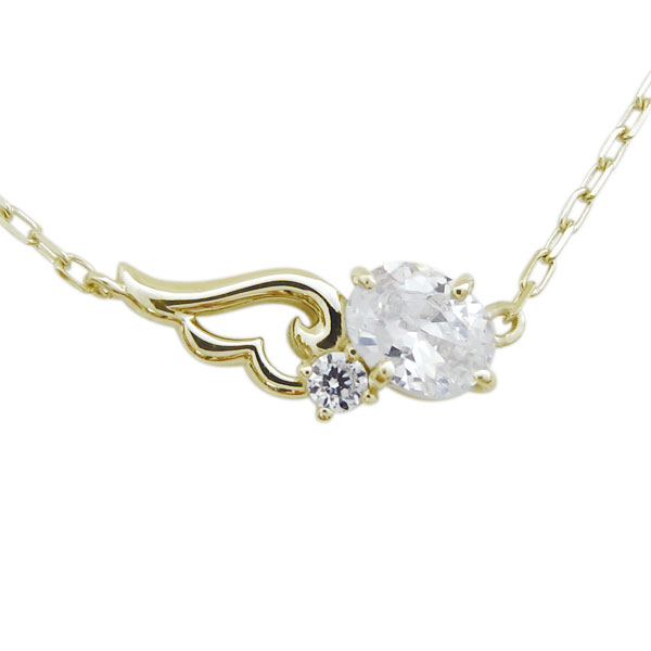 エンジェル ネックレス キュービックジルコニア 18金 フェザーネックレス