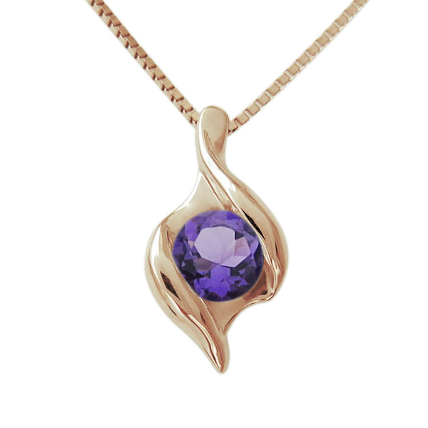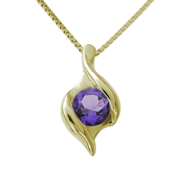 2月誕生石アメジストを一粒使用した、18金製のエレガントなネックレスペンダントです。