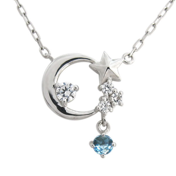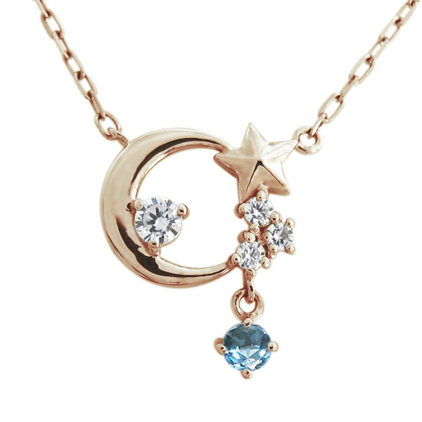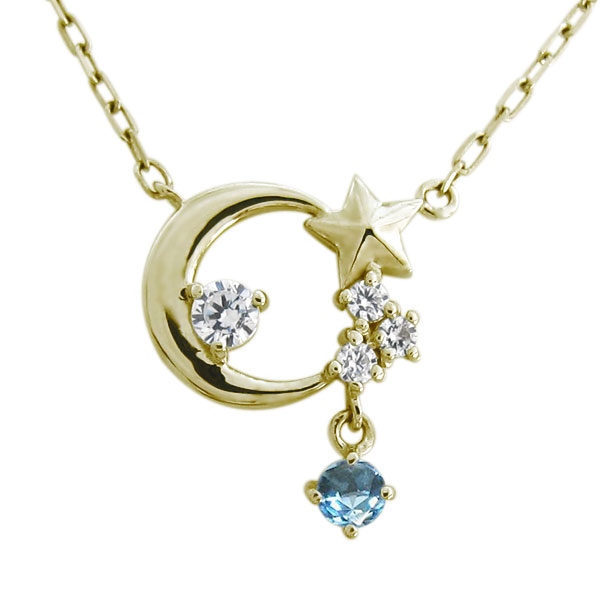 月 星モチーフ ブルートパーズネックレス ムーンペンダント 18金