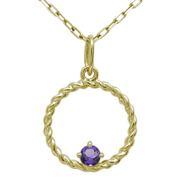 ![]() 2月誕生石アメジストを使用した、10金製の縄モチーフ、シンプルネックレス・ペンダントです。 すっきりした印象を与えるサークルがクールな雰囲気のネックレス。 シンプルなデザインなので、どんなファッションにも使えるアイテムです。