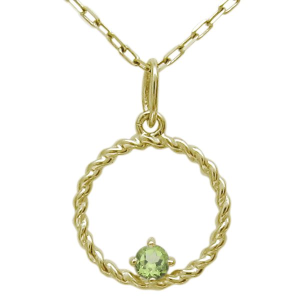 ![]() 8月誕生石ペリドットを使用した、10金製の縄モチーフ、シンプルネックレス・ペンダントです。 すっきりした印象を与えるサークルがクールな雰囲気のネックレス。 シンプルなデザインなので、どんなファッションにも使えるアイテムです。