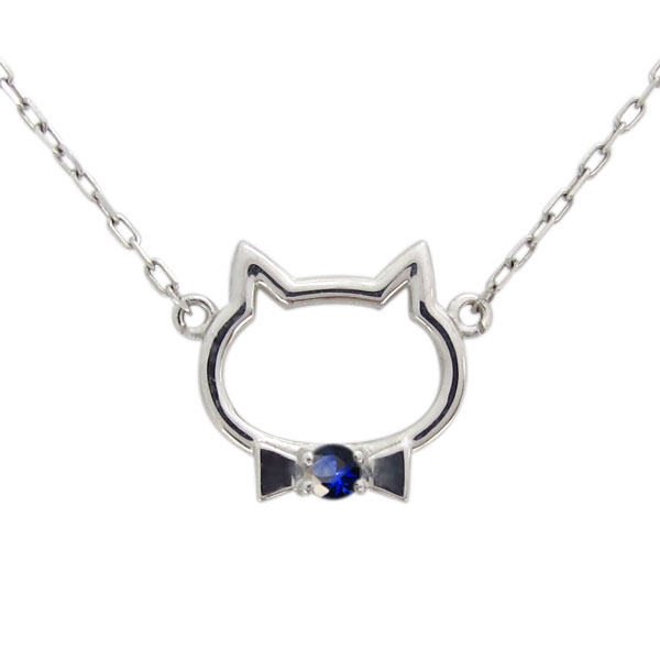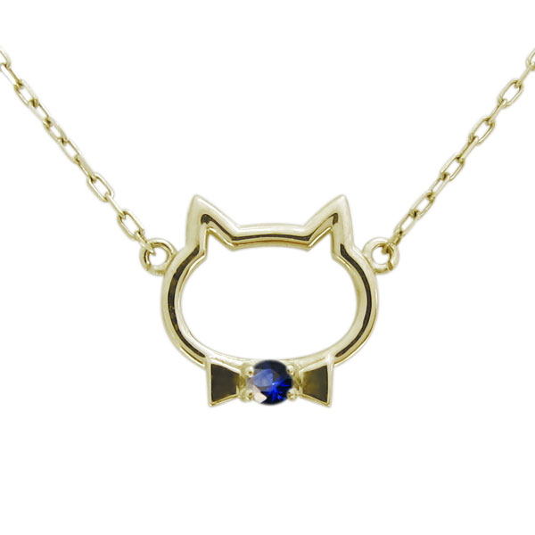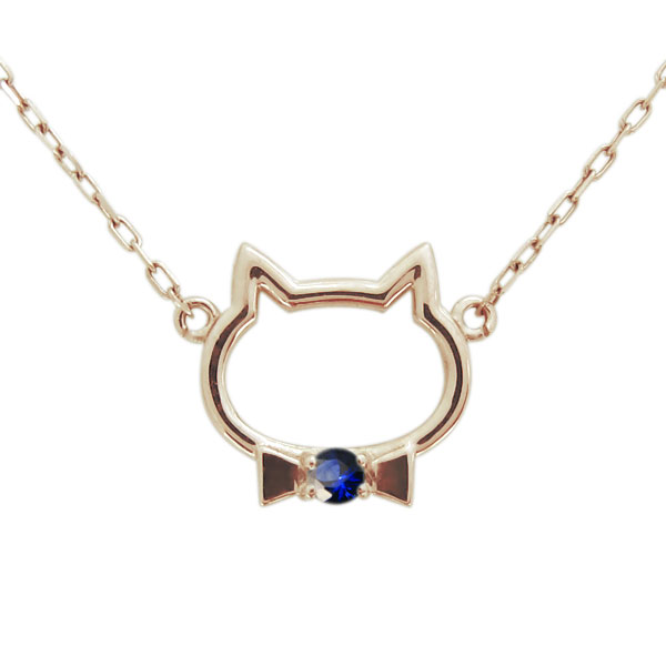 9月誕生石サファイアを使用した、18金製の猫モチーフネックレス・ペンダントです。