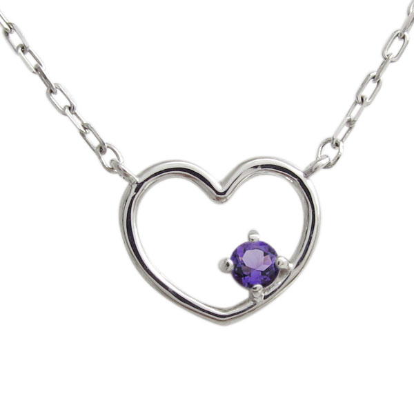2月誕生石アメジストを使用した、プラチナ製のハートモチーフネックレスペンダントです。