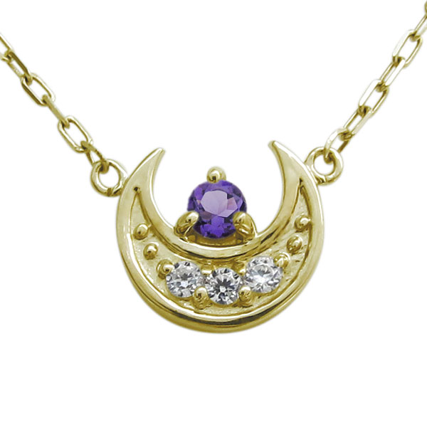 ![]() 2月誕生石アメジストを使用した10金製の三日月(ムーン)モチーフネックレスペンダントです。 神秘的な魅力をもつ月のモチーフを上品なネックレスに仕上げました。