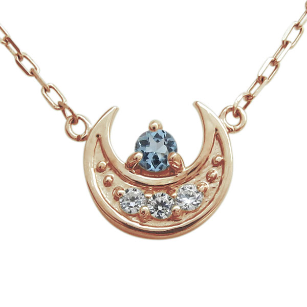 ![]() 3月誕生石アクアマリンサンタマリアを使用した 10金製の三日月(ムーン)モチーフネックレスペンダントです。 神秘的な魅力をもつ月のモチーフを上品なネックレスに仕上げました。